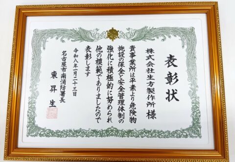 日頃より取り組んできた危険物施設の適正管理および安全管理体制が評価されたものです。